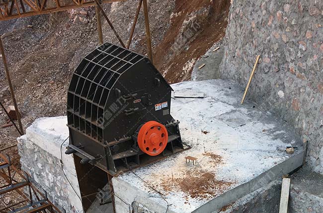 原料由振動給料機均勻的輸送給重型錘式破碎機PCZ1615