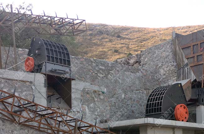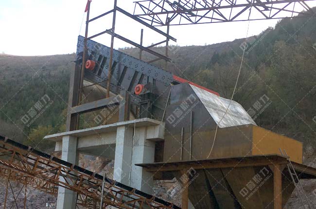 從現場圖片可以看到,該生產線設備配置簡單,是一條的中型石料破碎生產線配置,采用頭破+二破的形式,同時出粗骨料和砂石骨料。