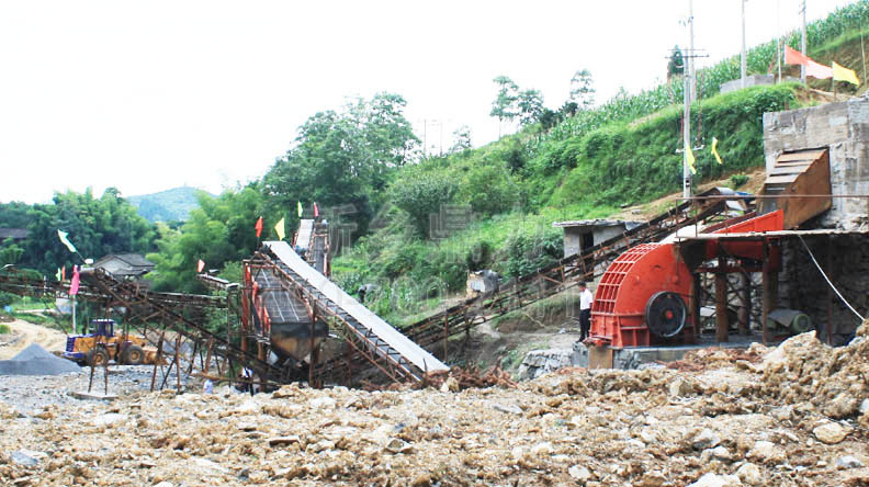 此條時產300噸石料生產線所用礦山設備只有寥寥數(shù)臺,但是產量卻可以達到時產300t/h,這主要得益于我們的PCZ1512重型錘式破碎機,該設備單機時產可達320噸左右,且可以一次成型,在場地、耗電量、設備投資等方面遠遠低于顎破和反擊破的投入。
