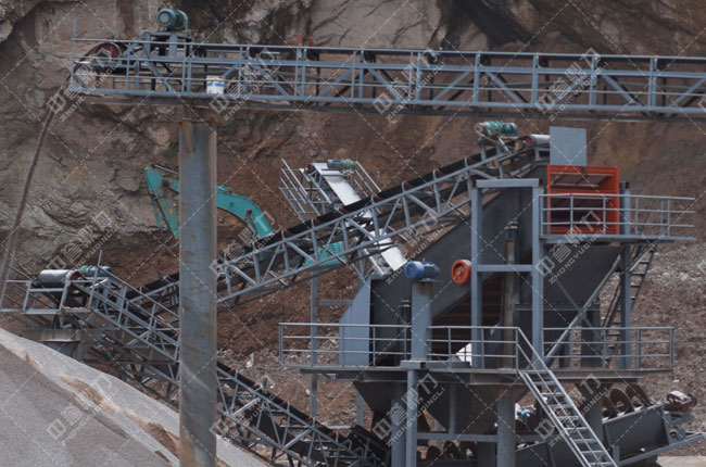 利用地形落差,破碎篩分后的成品料經(jīng)過管道直接落到成品料堆,節(jié)省輸送帶方面的投資;