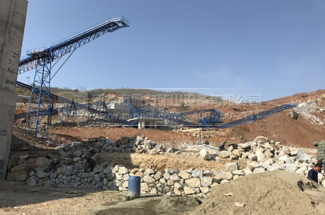 從生產現場我們看到,此條時產600噸錘式破碎機石料生產線是依托螢石礦建成的,螢石是工業上氟元素的主要來源,它廣泛用于醫藥、防腐、機械等域,是一種硬度較脆的物料,為了減少生產中產生的石粉,我們設置了多臺破碎機進行再次破碎的環節,然后將回料輸送到破碎機內進行再次破碎,終可以達到客戶出料粒度的要求。