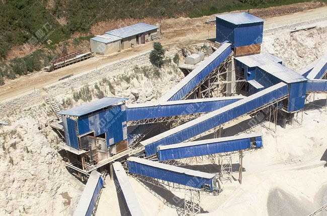 下圖為破碎后的物料進(jìn)行篩分,篩分出的成品物料分別送到料倉中,不滿足要求的送回破碎機(jī)進(jìn)行再次破碎。