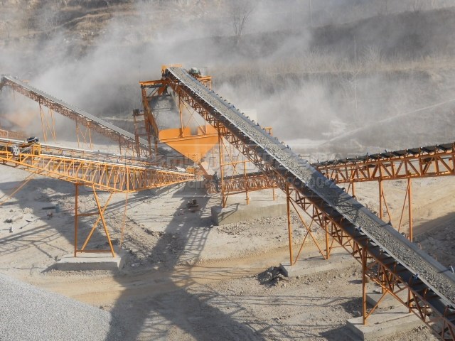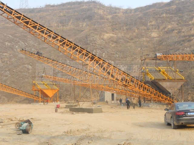 在生產現場我們看到,各種粒徑不同的石子從不同的輸送帶內輸送出來,可以方便的將物料區分開來,不同的成品料可以應用在不同的生產項目中,在山石比較集中的地區建設,可以就近方便取材,此條時產500噸砂石骨料生產線成品料供往各地。