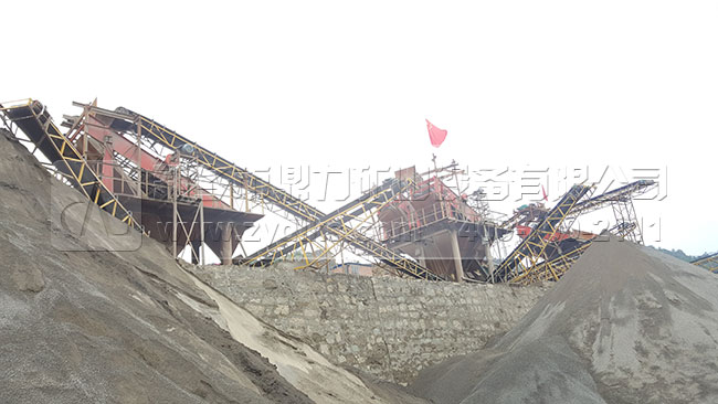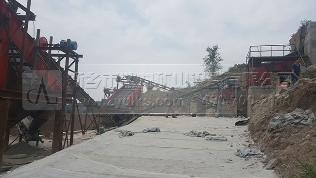 從生產現場我們可以看到,此條日產1500噸砂石料生產線部都是選用我們公司的設備,原料和成品料之間部都是用皮帶輸送機傳輸的,生產流程是流暢,可以自動化的將成品料生產出來,減少了使用額外附加設備的幾率。