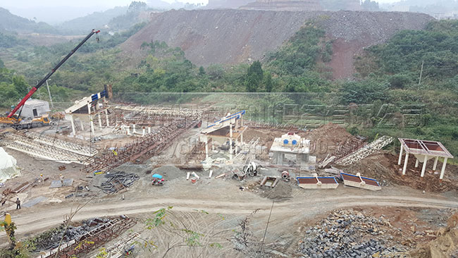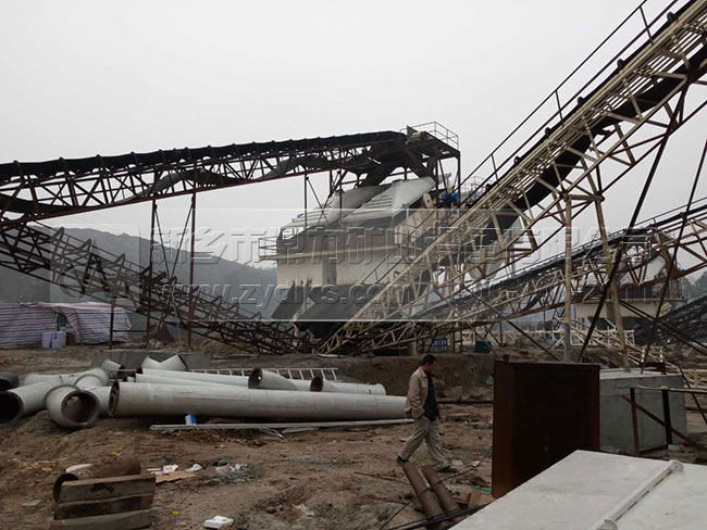 此條時產(chǎn)600噸砂石料生產(chǎn)線主要包括2臺重錘破、11臺篩分設(shè)備、2臺ZSJ1218制砂機,并且配備有完備的中轉(zhuǎn)倉和環(huán)保除塵設(shè)備,設(shè)備產(chǎn)能是比較大,預(yù)計設(shè)計的產(chǎn)能是500噸,在實際的生產(chǎn)中達到了600-700噸,生產(chǎn)效果良好。