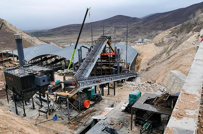 【設備配置】:采用中譽鼎力套礦山設備,如DLZGC2050振動給料機、DLPCZ1820重型錘式反擊破碎機、DLPC1622整形式破碎機、DL3YKZ3070振動篩、DLQMC脈沖袋式除塵器(11臺)等,以及中譽鼎力成套智能礦山管理系統和低壓配電管理系統
