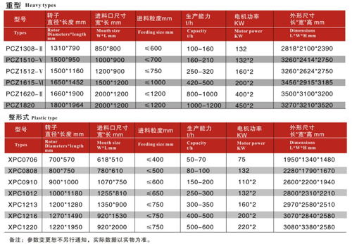 重型錘式破碎機(jī)及型破碎機(jī)型號(hào)參數(shù)