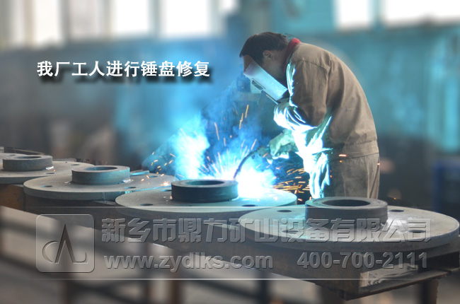 錘盤先受到磨損的表現是錘盤外緣處受到磨損,錘盤外緣處受到磨損不僅會導致轉子運行不平穩,而且將會加劇錘頭的磨損,需要不斷更換錘頭,不僅浪費生產時間,還增加了生產成本,應該對其磨損外緣進行反復堆焊,可以使得層磨損后,使得錘盤本身不會受到直接磨損,在堆焊的材料選用上,選用高合金焊接材料,含有多種合金材質,使得堆焊過后的錘盤具有高性和抗沖擊性。