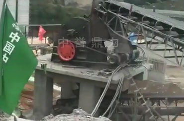 視頻展現的是給料機送料到錘式破碎機進料口,進行一次破碎。