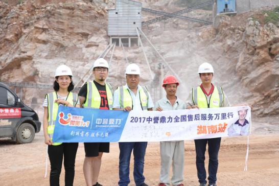 中譽(yù)鼎力售后服務(wù)團(tuán)隊(duì)與楓林采石場(chǎng)生產(chǎn)負(fù)責(zé)人張瑞陽(yáng)合影
