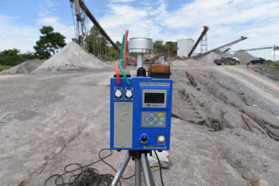在大坪采石場生產現場,我們看到該生產線采取了多項環保措施,例如皮帶轉載點配備自動噴霧裝置,采石場內安裝了2臺智能空氣采樣器監測粉塵排放量,灑水車不間斷作業,整體生產環境較為環保。