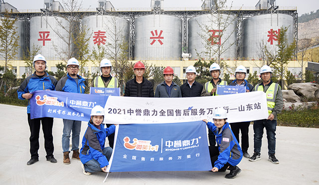 第一站山東永發建材2021年10月18日上午,中譽鼎力售后服務萬里行團隊來到山東省濟南市的永發石料有限責任公司與負責人高總就生產線運營情況開展深入交流。