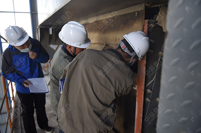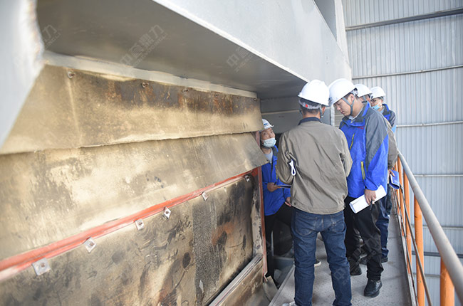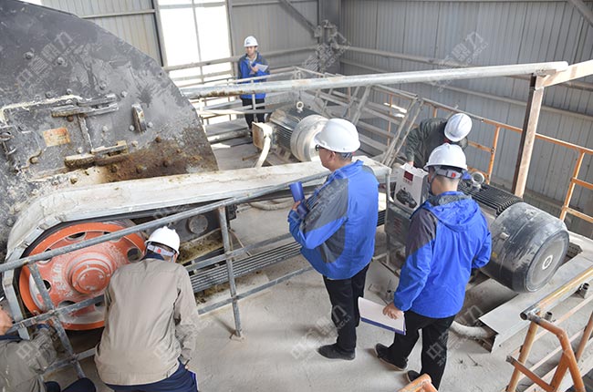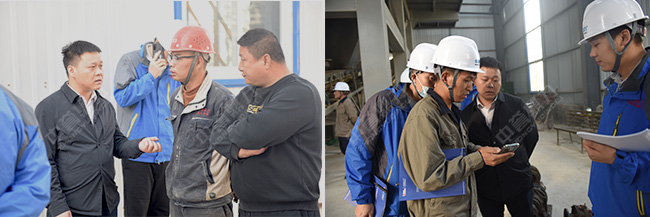 售后服務團隊來到時產1000噸環保智能砂石骨料生產線篩分、制砂、除塵等現場,詳細了解并認真檢查設備使用情況,向高總提出了維護保養建議。
