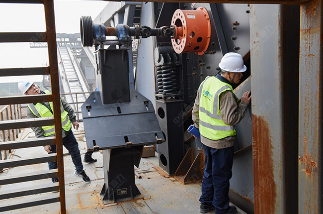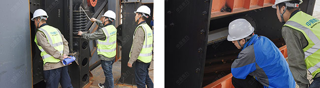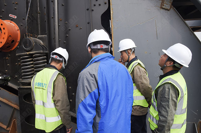 在項(xiàng)目建設(shè)現(xiàn)場(chǎng),售后服務(wù)團(tuán)隊(duì)深入破碎機(jī)頂部認(rèn)真檢查每一個(gè)配件,并就項(xiàng)目的安裝、設(shè)計(jì)工藝等進(jìn)行詳細(xì)說(shuō)明和安裝指導(dǎo)。