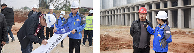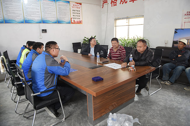 這里清新的空氣、宜人的風(fēng)景讓大家心曠怡。售后服務(wù)團(tuán)隊(duì)到達(dá)項(xiàng)目現(xiàn)場(chǎng)后,先與鑫象建材項(xiàng)目負(fù)責(zé)人楊總在會(huì)議室就項(xiàng)目在建過(guò)程中遇到的問(wèn)題、難題等進(jìn)行詳細(xì)交流,例如雨水較多帶來(lái)的基礎(chǔ)滲水問(wèn)題,楊總希望我們能給出建議,幫助其解決問(wèn)題。